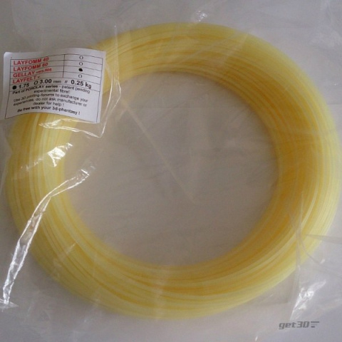 GelLay v505 to filament z serii POROLAY – eksperymentalnych filamentów drukowalnych na standardowych drukarkach 3D w temperaturach 190°C – 235°C. GelLay podczas drukowania jest stosunkowo twardy, natomiast po przetrzymaniu w wodzie wypłukiwane są niektóre składniki i w efekcie powstaje mikroporowata struktura. Nadaje się do drukowania elastycznych obiektów. Wykonany z elastomerów i PVA które ulega wypłukaniu w wodzie. GelLay po wypłukaniu zachowuje się dwojako: mokry przypomina galaretkę i nadaje się np. do symulowania zwierząt morskich lub części ciała, suchy jest stabilny, niezbyt elastyczny, ale giętki.