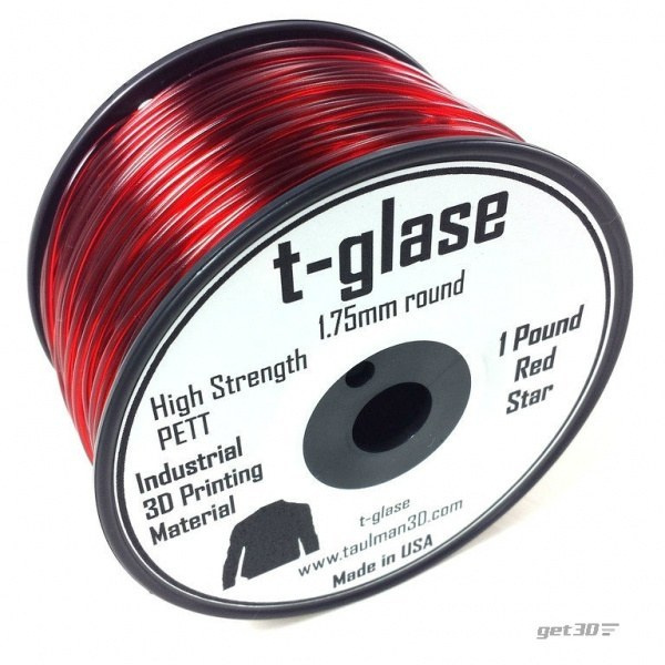 Taulman 3D t-glase to najnowszy produkt producenta nylonu. Przeznaczony min. dla tych którzy drukują głównie z PLA czy używają niskotemperaturowych drukarek 3D. Optymalna temperatura druku to 238°C - 245°C ale można drukować od 230°C do 248°C. Głównym składnikiem t-glase jest polimer PETT. Bardzo wytrzymały i przezroczysty, w przeciwieństwie do nylonu nie wymaga specjalnych powierzchni stołu - przykleja się do akrylu, szkła, kaptonu i innych najlepiej podgrzanych do 45°C i ewentualnie dodatkowo posmarowanych klejem z PVA. Bardzo dobrze zachowuje się przy drukowaniu przewieszek. Nie wydziela zapachu podczas drukowania. t-glase jest wykonany z polimerów zatwierdzonych przez FDA (Amerykańska Agencja ds. Żywności i Leków) do kontaktu z żywnością. Czyli można z niego drukować bezpieczne kubki  t-glase jest bardzo mocny, ale w inny sposób niż wydruki z nylonu. Po stwardnieniu bardziej przypomina ABS czy PLA. Cena regularna to 169 zł za 450 gram (375,55 zł/kg).