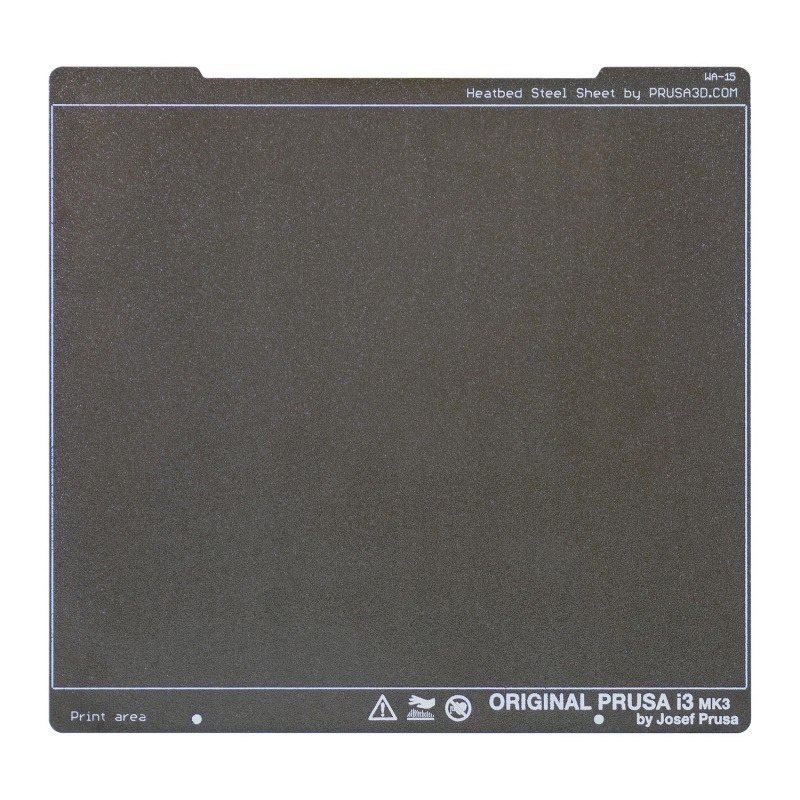Napylanie proszkowe bezpośrednio na metal sprawia, że bardzo ciężko jest uszkodzić tę płytę. Jeśli nagrzana dysza uderzy w nią, metal może rozproszyć ciepło. Malowanie proszkowe nadaje powierzchni wyraźny, teksturowany wygląd, który będzie widoczny na wydrukach. Teksturowana powierzchnia ukrywa większość mechanicznych uszkodzeń spowodowanych przez narzędzia. Tylko górna część małych wypustków może zostać zadrapana, co nie będzie widoczne na spodzie modelu.