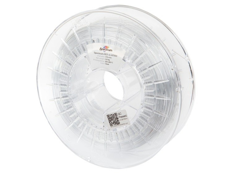 Spectrum PET-G HT100 to filament na bazie kopoliestru przeznaczony do druku 3D w technologii FFF/FDM. Materiał przeznaczony jest dla zaawansowanych użytkowników drukarek 3D, w szczególności tych, którzy wymagają od wydruków doskonałej trwałości, działania w rzeczywistych warunkach PET-G HT100 nie zawiera styrenu, jest materiałem o lekko wyczuwalnym zapachu, posiadającym dopuszczenie do kontaktu z żywnością. Znakomita stabilność wymiarowa pozwala na drukowanie 3D przedmiotów z dokładnym zachowaniem wymiarów, co jest szczególnie istotne przy projektach składających się z wielu elementów. Jednym z największych atutów PET-G HT100 jest podwyższona odporność na temperaturę wynosząca 100 stopni Celcjusza.