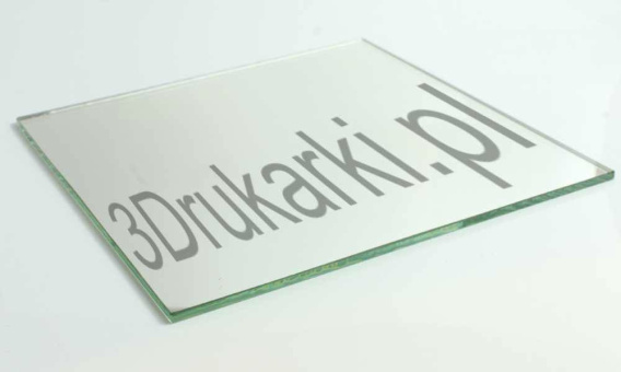 Wielkość szyby to 20x20 cm, grubość 4 mm. Szyba wykorzystywana jest do drukowania w technologii FFF. Krawędzie szyby, są szlifowane, aby polepszyć komfort użytkowania.